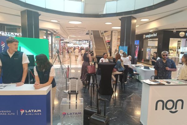 Activación promocional y turística de la Provincia de Neuquén Argentina, junto a LATAM, desarrollada para American Network en la Plaza de las Esculturas del Parque Arauco de Santiago.
